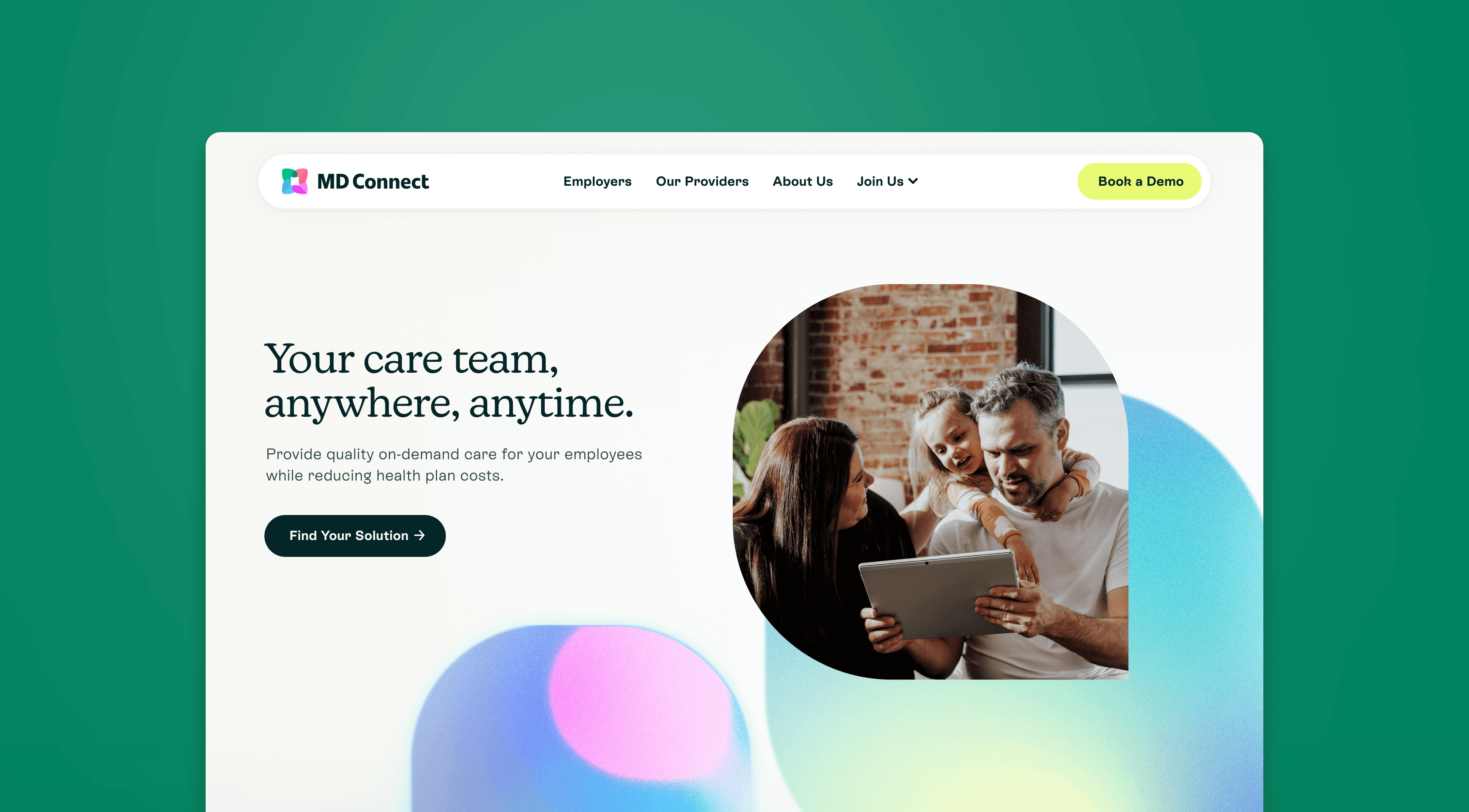 Connected Care, Anywhere. A concept redesign for MD Connect, evolving their brand and interfaces into a cohesive telehealth experience.